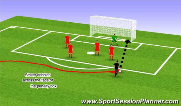 To simulate this, we use 2-6 defenders, spreading them across the penalty box, about 2-3 yards apart, and at different distances from the edge of the box.