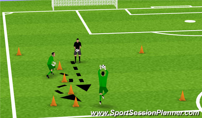 Lay out 6 cones in a line. Keeper skips through the line, then turns towards the thrower/kicker, and makes the save. Alternate after three goes.