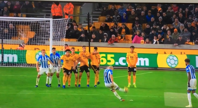 In a recent EPL game, Huddersfield scored from a free-kick in a dangerous area, Wolves had made a good wall, the last “anchorman” aligned with the post and the ball as required. But the striker was able to bend the ball slightly, around the wall and into the bottom corner