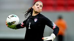 The ball starts in the same position, directly behind the keeper – see pic of Hope Solo below. The arm is brought across the body from the side, and the ball leaves the hand just below the neck level. The arm follows through across the body. The non-throwing arm can act help “aiming” the throw, but it’s all a little more awkward than the overarm through.
