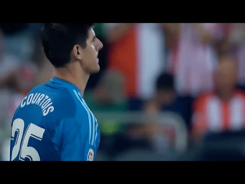 Watch here how Courtois decides to rush the striker, making himself big, but failing to make contact as the ball is slipped back into the box and bundled in by the Bilbao striker.