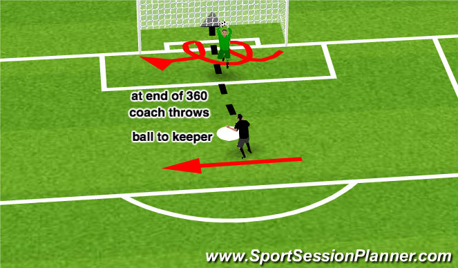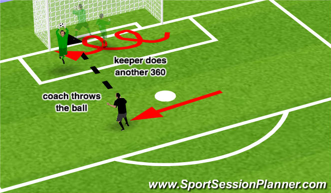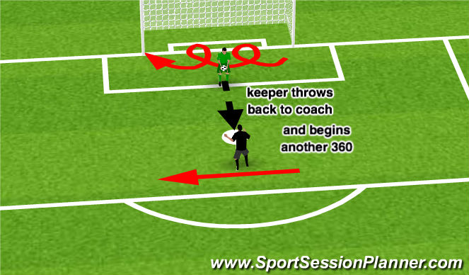At the other post, the server/ coach throws another pass which the keeper catches, then returns to the server/coach and they begin the whole exercise going the opposite direction.