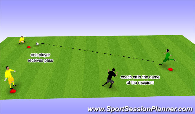 In this drill, they should already be confident they know where “Tom” and “Pete” are, and how far they are. When hearing the name called by the coach, they should already be deciding whether to “open their body” to the ball ready for the pass.