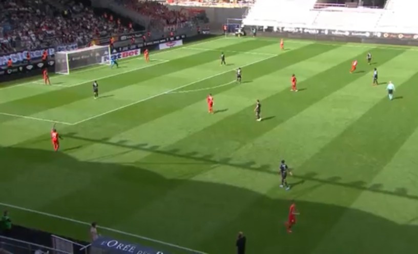 In this example, in the French Ligue 1 (yes, the one Messi plays in now, with PSG) the keeper has 4 defenders to roll it to, along with the big punt up field.
